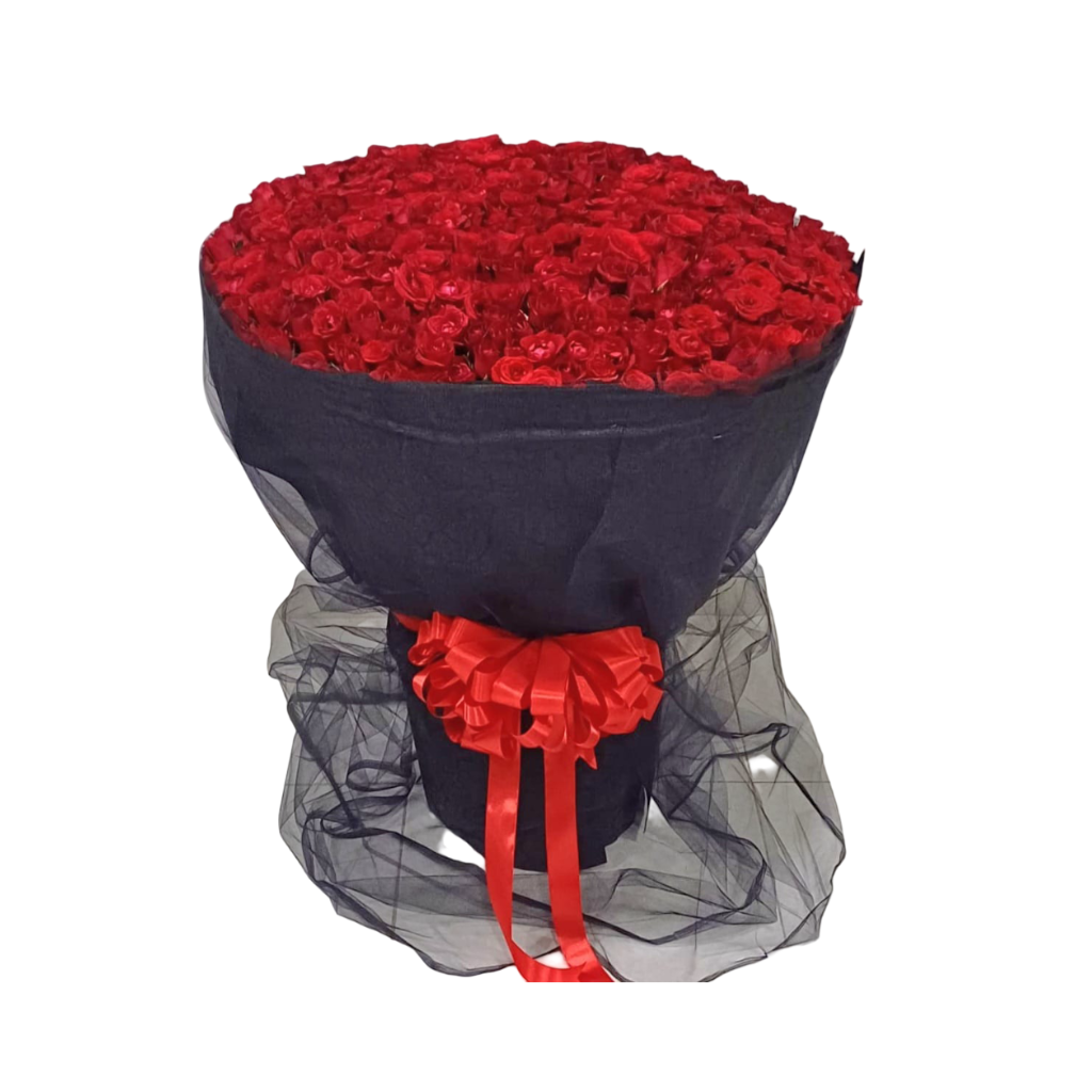 Hand Bouquet Qunazu adalah definisi sempurna dari kemewahan, kekuatan cinta, dan keanggunan dalam satu rangkaian bunga yang memukau. Buket ini tersusun dari ratusan mawar merah segar yang dibungkus rapi dengan kain hitam eksklusif serta dilengkapi dengan pita satin merah mencolok yang memperkuat nuansa romantisnya. Qunazu bukan hanya sekadar bunga, tetapi representasi dari perasaan mendalam yang dibungkus dengan gaya berkelas dan megah. Cocok untuk diberikan pada momen-momen penting seperti lamaran, peringatan hari jadi, atau perayaan cinta yang penuh makna.